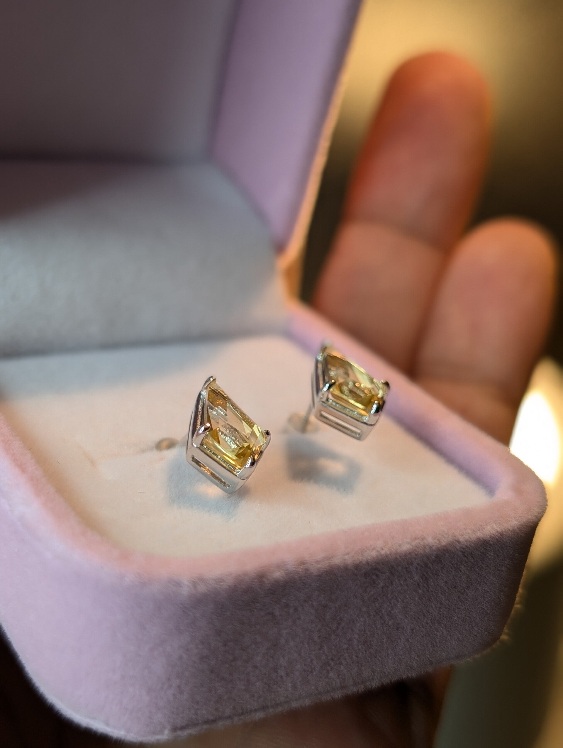 925 Zilveren citrien oorknoppen
