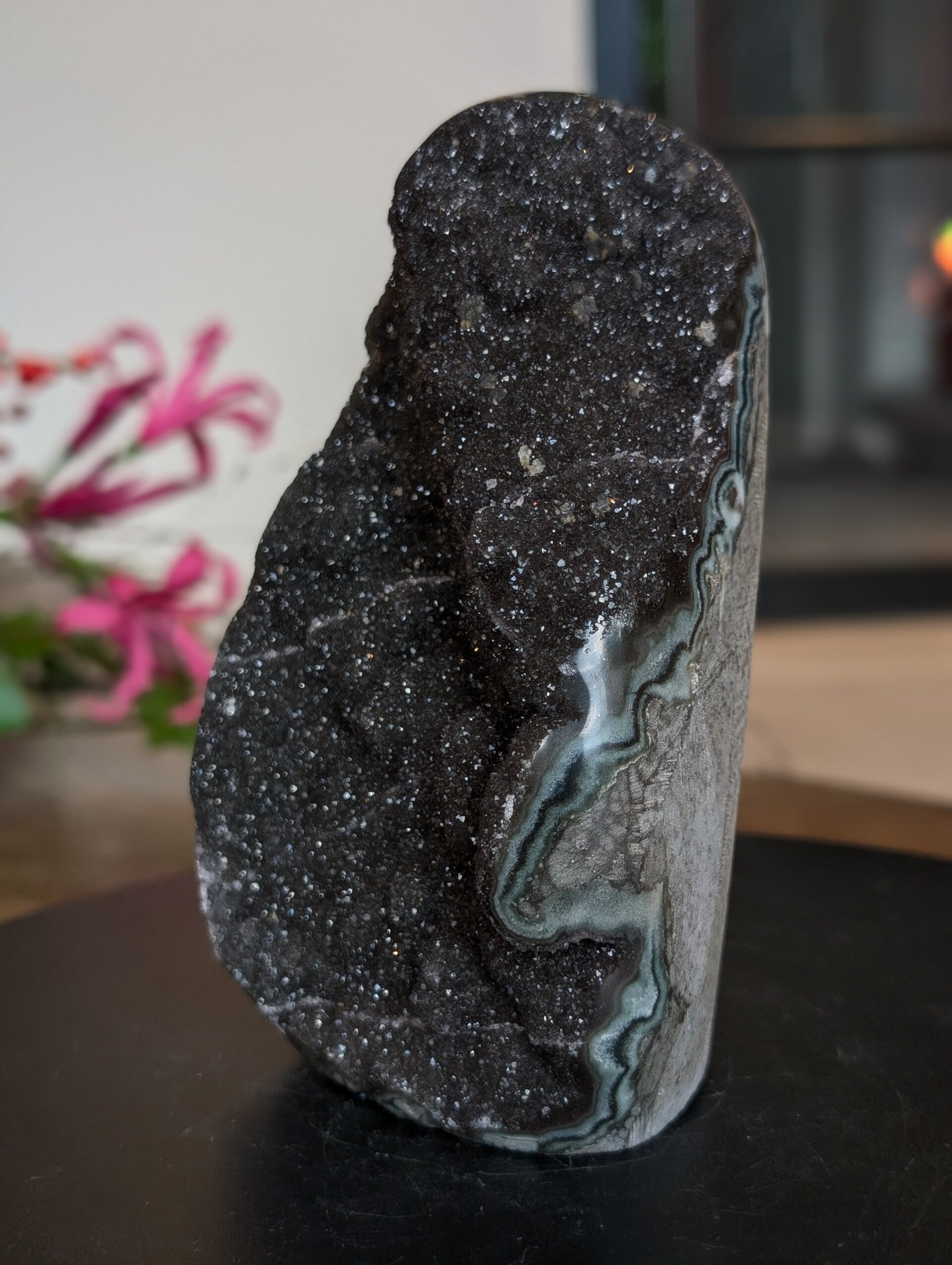 Zwarte amethist is een krachtige beschermsteen die negatieve energie omzet in rust en helderheid. Ze helpt je loslaten wat niet meer dient en brengt balans tussen lichaam, geest en ziel — ideaal voor meditatie en spirituele groei.